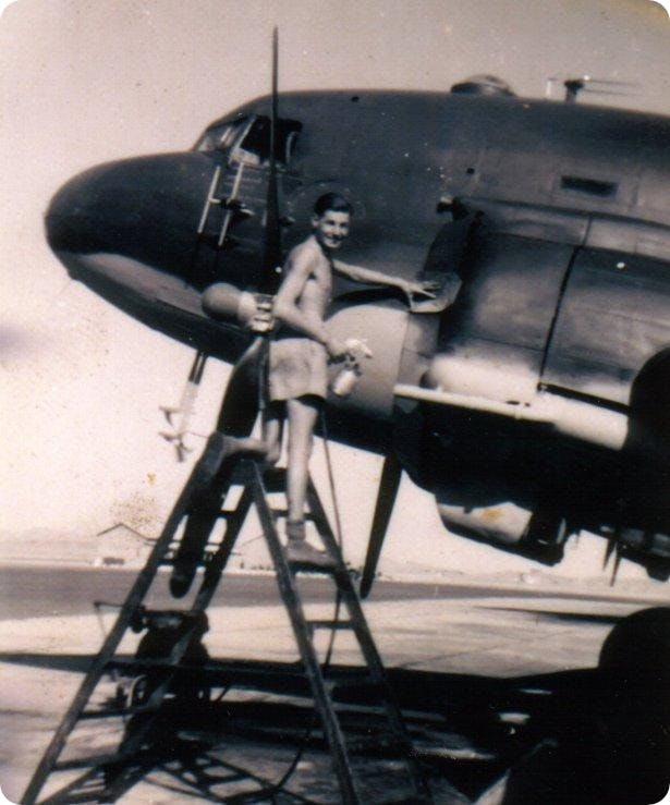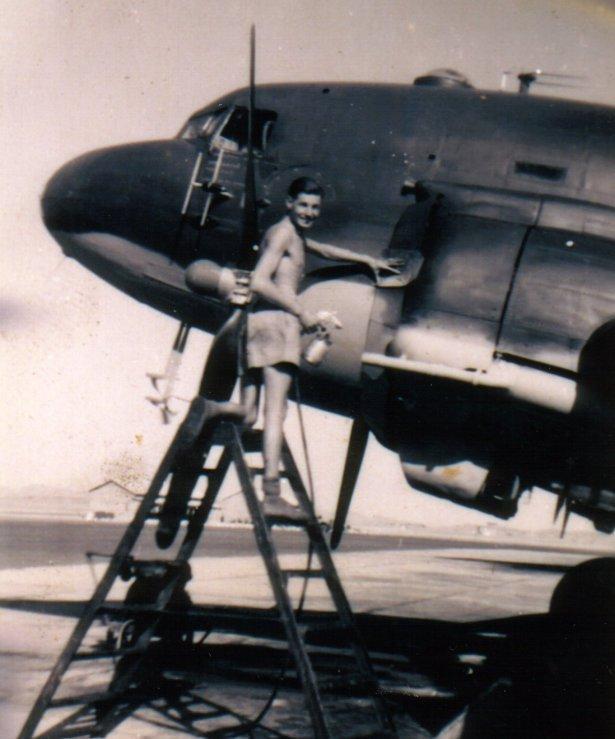 Denis Spraying a Dakota, Karachi 1947 as a Leading Aircraftsman