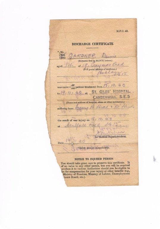 I didn't go back to delivering newspapers. I was now the local hero, head bandaged and arm in a sling. A woman came up to me one day and told me she'd pulled a kerbstone off my head. The raids were still happening, but we were getting used to them and life had to go on. We had no counselling in those far off days, we called it internal fortitude then.