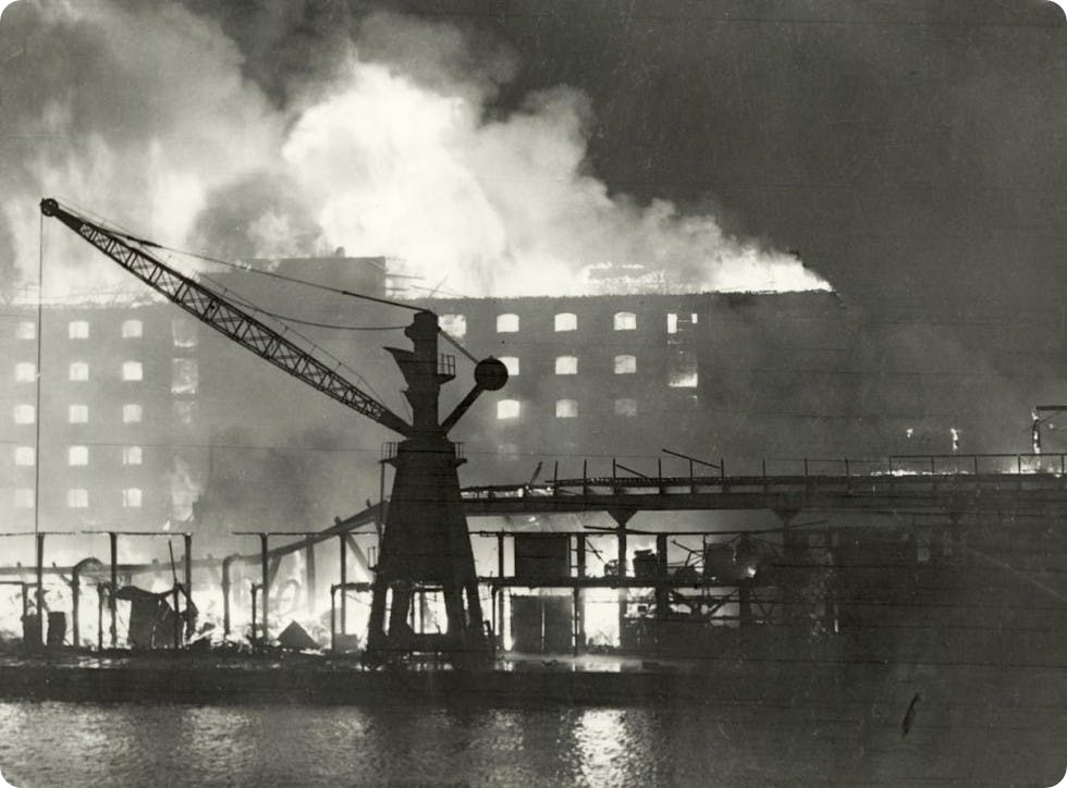 The fires in dockland burned for days.