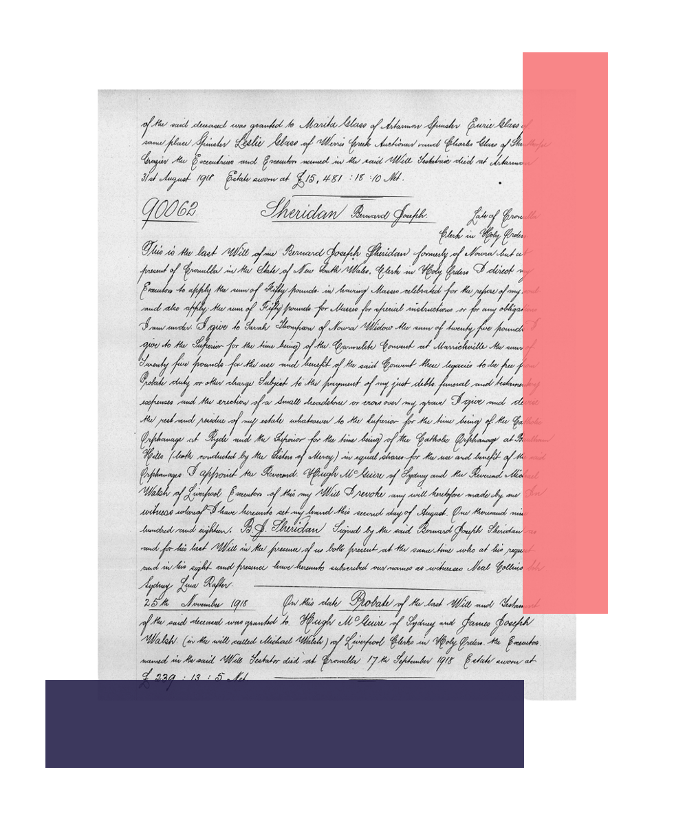 You can uncover new details about your ancestor by delving into our collection of Deceased Estate Files or discover your ancestor's last will and testament among hundreds of thousands of New South Wales will books between 1800 and 1952. Uncover the particulars of their estate, trace their financial history, and learn about their beneficiaries and personal relationships: